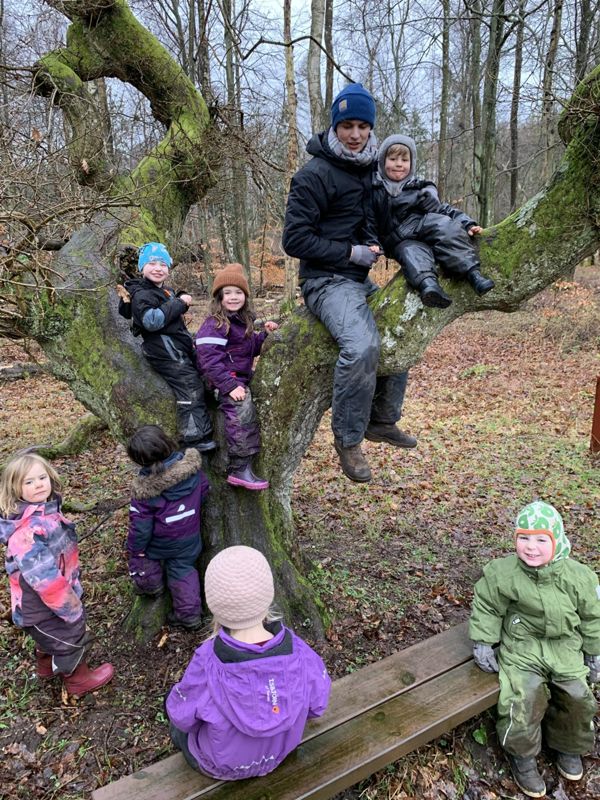 De ældste børn, og dem der har rigtige gode gåben, kommer ofte på en længere tur, med madpakker i rygsækken. Det kan være til det store shelter eller til Naturlegepladsen Eghjorten.